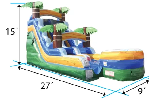 Single slide - can be used with or without water15 ft height. 27 feet long, 9 feet wide